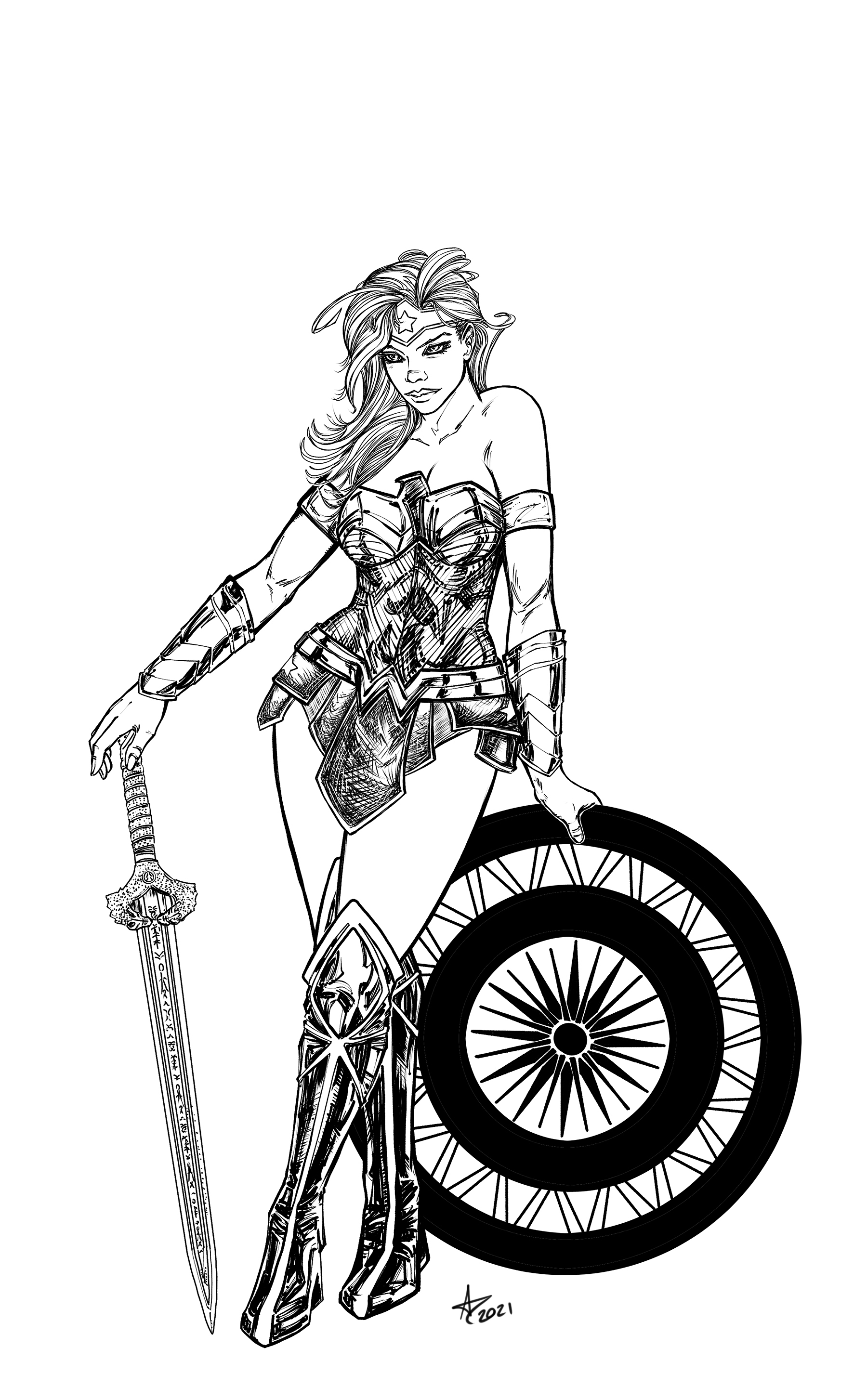 Magik, Supergirl, and now Wonder Woman. Just a few days ago was a Wonder Woman celebration day, so I’m posting just the line art, and then next week I’ll add the full colour/background piece.