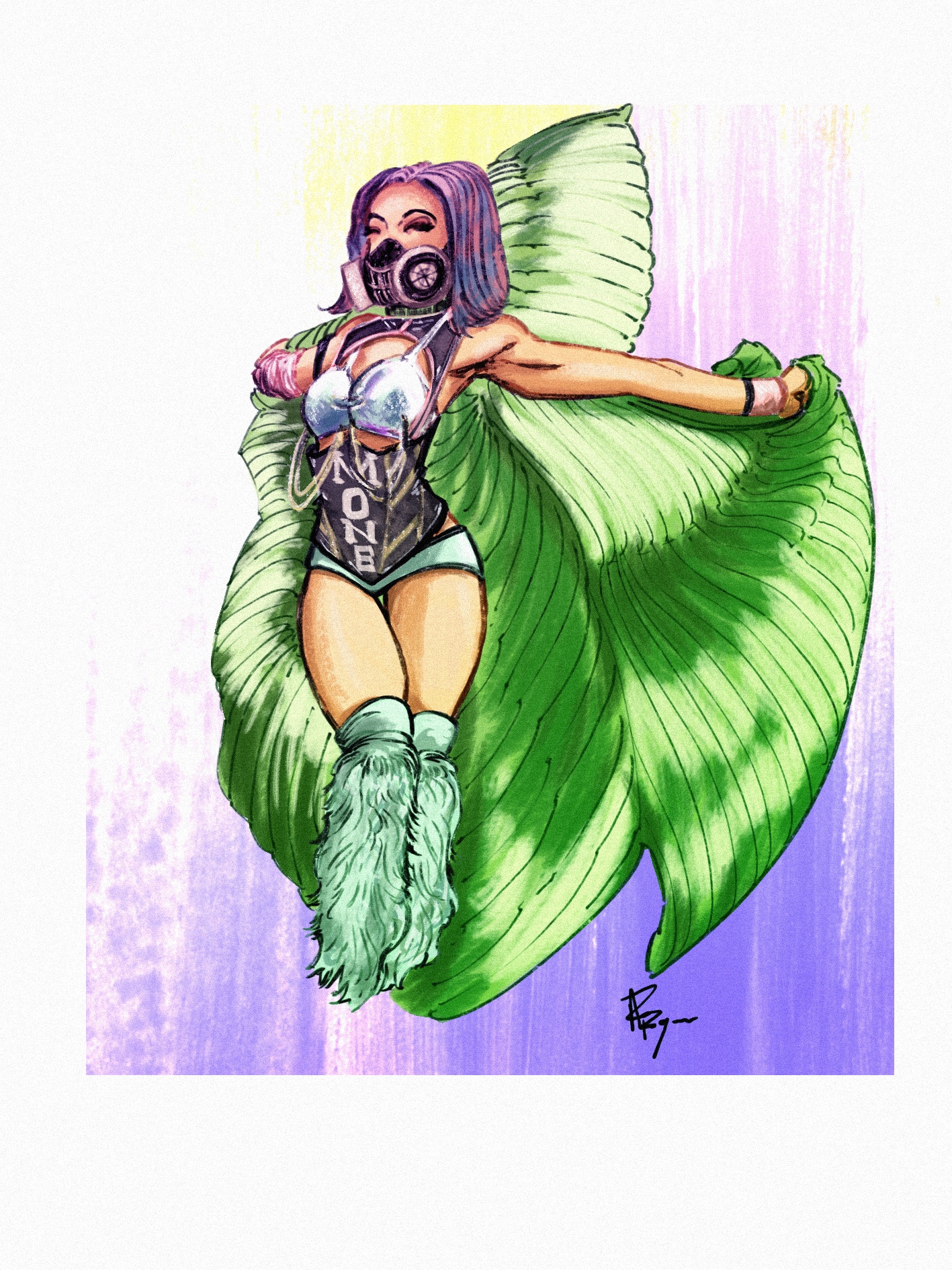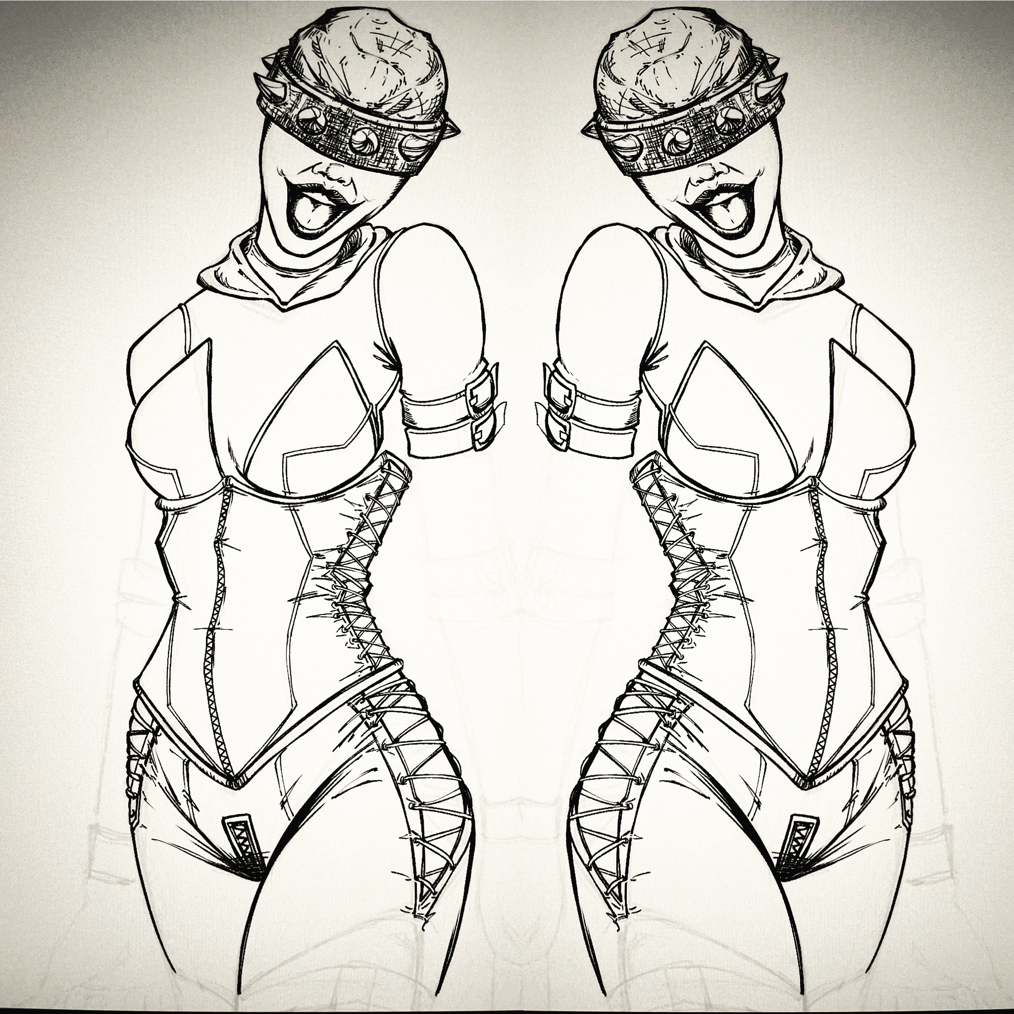 Another quick drawing, in Lollipop Chainsaw. And a work-in-progress update of The Gwen Who Laughs. As it had been a while since my last Spider-Gwen variant I figured it was time (my wife would say never again is too soon), and the idea of a Batman Who Laughs version was really intriguing to me. Very fetish, latex look. Corset and belts. Very harlequin type look. Could pass for a Harley Quinn variant instead almost. It was after struggling with this WIP that I decided to take a break and focus on more colour for a bit.