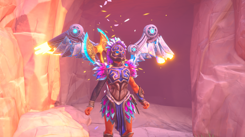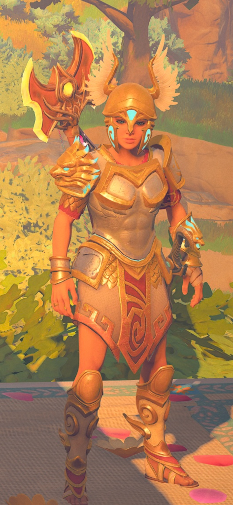 The game is a very vibrant soft coloured game and there are lots of different arena and puzzle style challenge rooms to mix up the standard-type combat. Ability to fly and ride a horse for traversal. And the collectibles usually involve some sort of challenge puzzle as well. Story is decent, and a good length – a humorous take on the Olympus Gods and Titans stories. Basically a big evil has been released and has turned everyone to stone and taken away the godly powers. Zeus and Prometheus are the two narrators of the story. Prometheus is more of the lead storyteller, and Zeus provides his colour commentary. Telling the story of how this mortal, Fenyx, will save the day. Combat is fairly easy to understand once you get used to the light attack and strong attack button mapping.