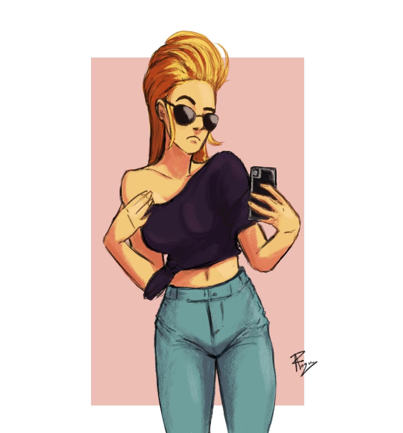 Gender bent Johnny Bravo. Modern day Miss Bravo if you will. There’s actual an episode where Johnny Bravo does get turned into a lady so that he knows what it feels like to be hit on incessantly.