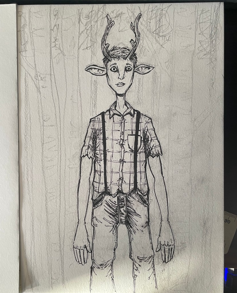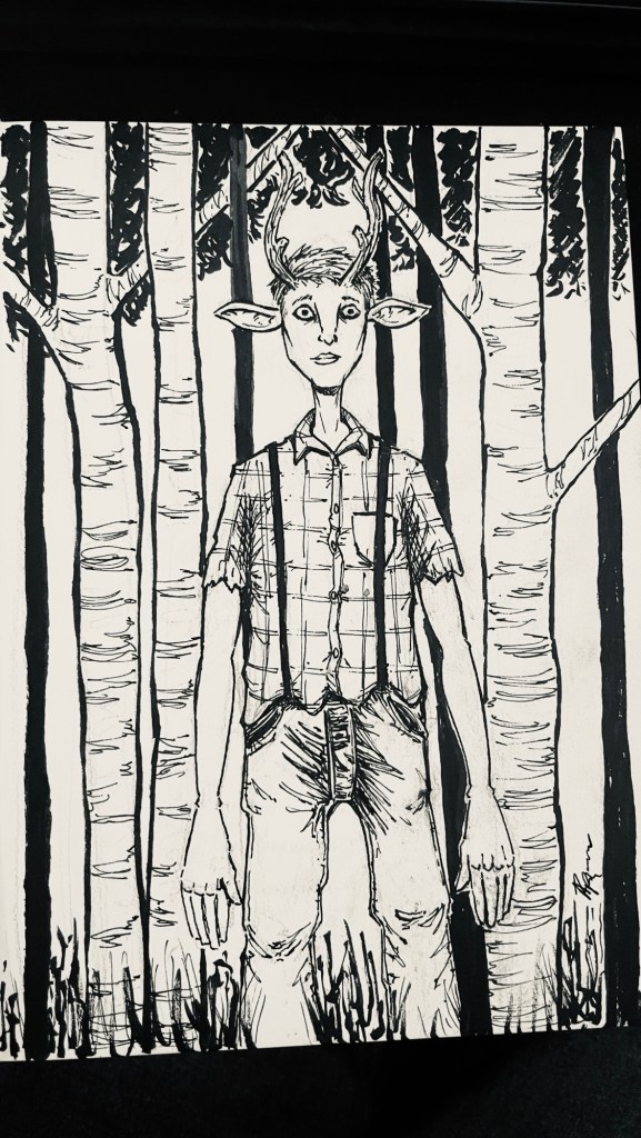 Out of the swamp and into the forest. Today’s drawing is from the Sweet Tooth comic made by Jeff Lemire. The main character, Gus, is a boy with deer-like features.