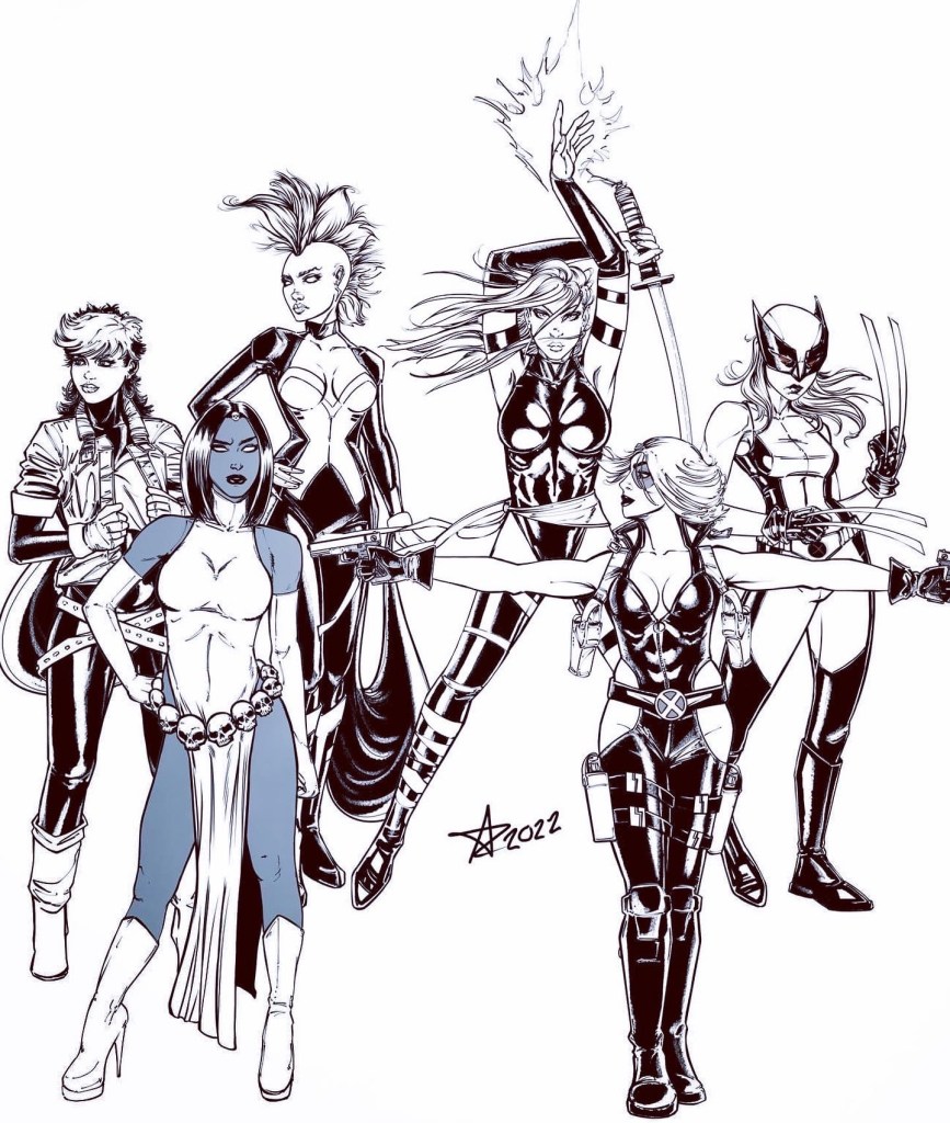 Another addition to the X-Ladies group, with Mystique. I think this will be the last addition too. 6 is a good round number for the group. Balances well. Now I just need to work on the background and overall character placement to fit a background. And then colour. I got quite the backlog of things to colour now. I should probably stop drawing new stuff for a bit and actually finish stuff. Like Harley Quinn, Angela, and this group. Better get started.
