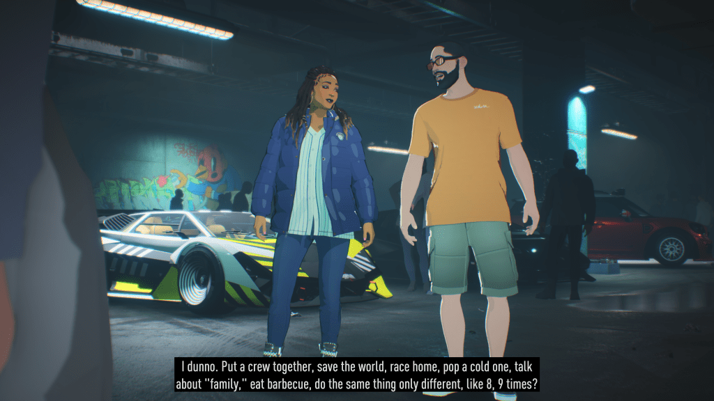 The writing was actually pretty funny in the final act. They make Fast and Furious jokes, and actually said “Need for Speed”: