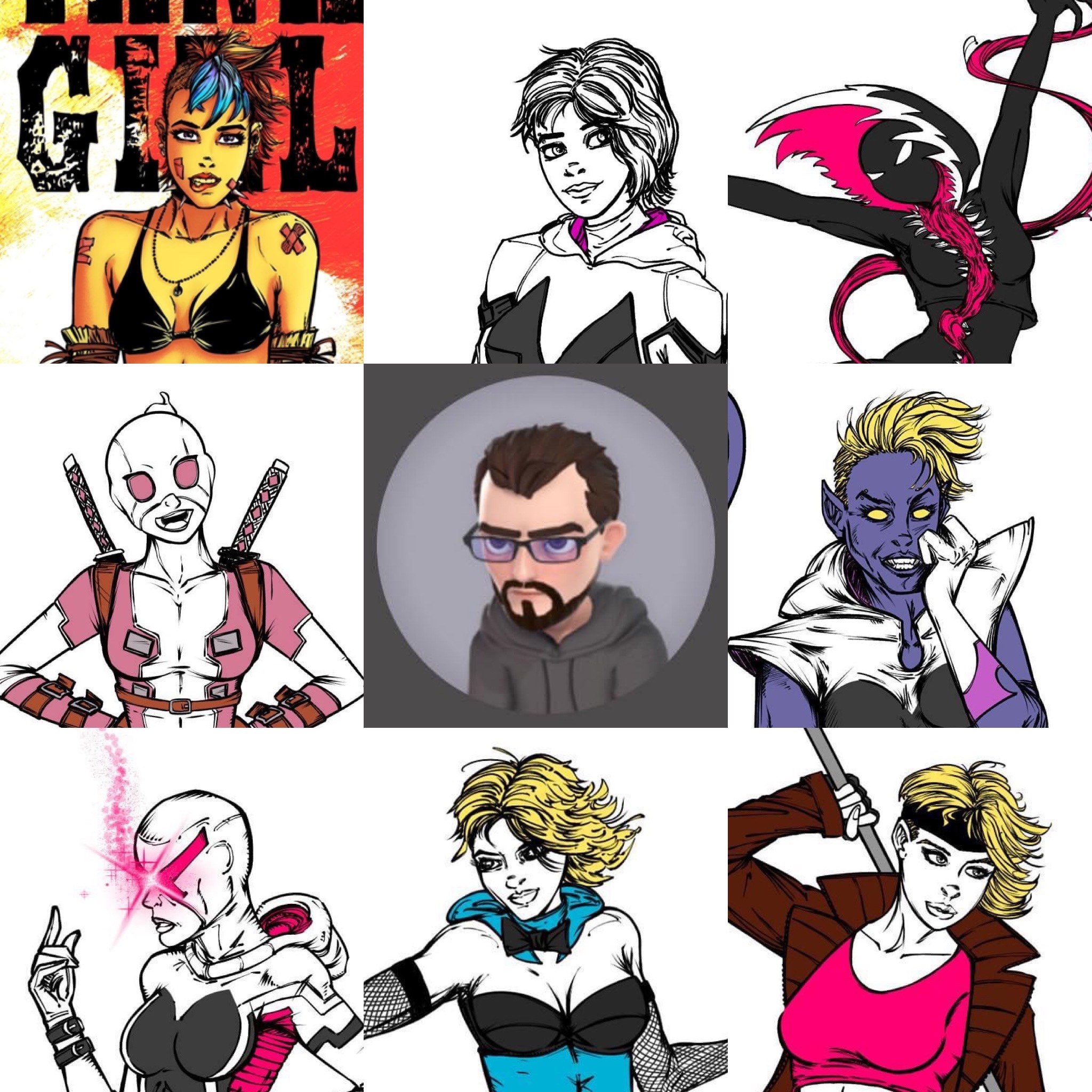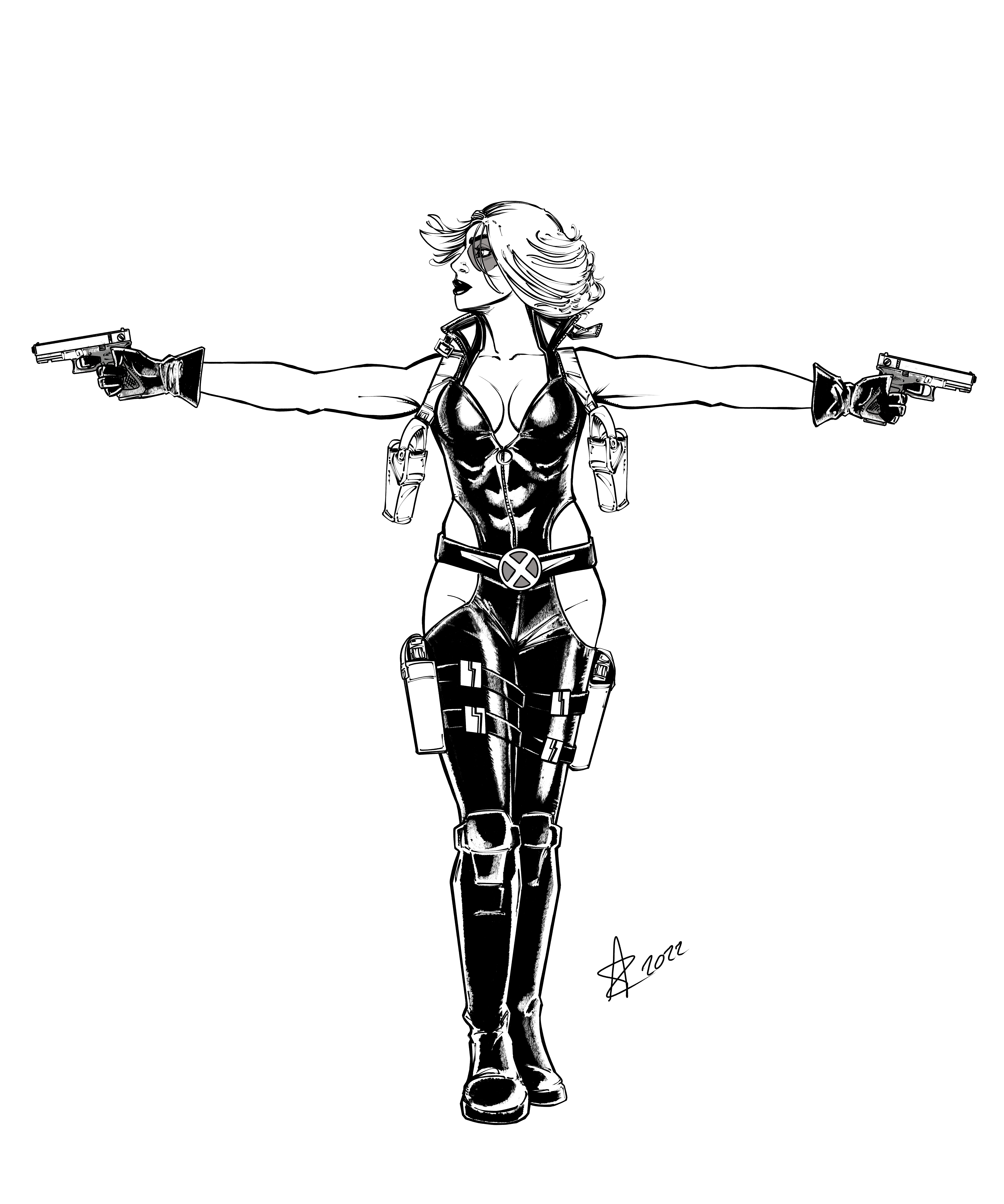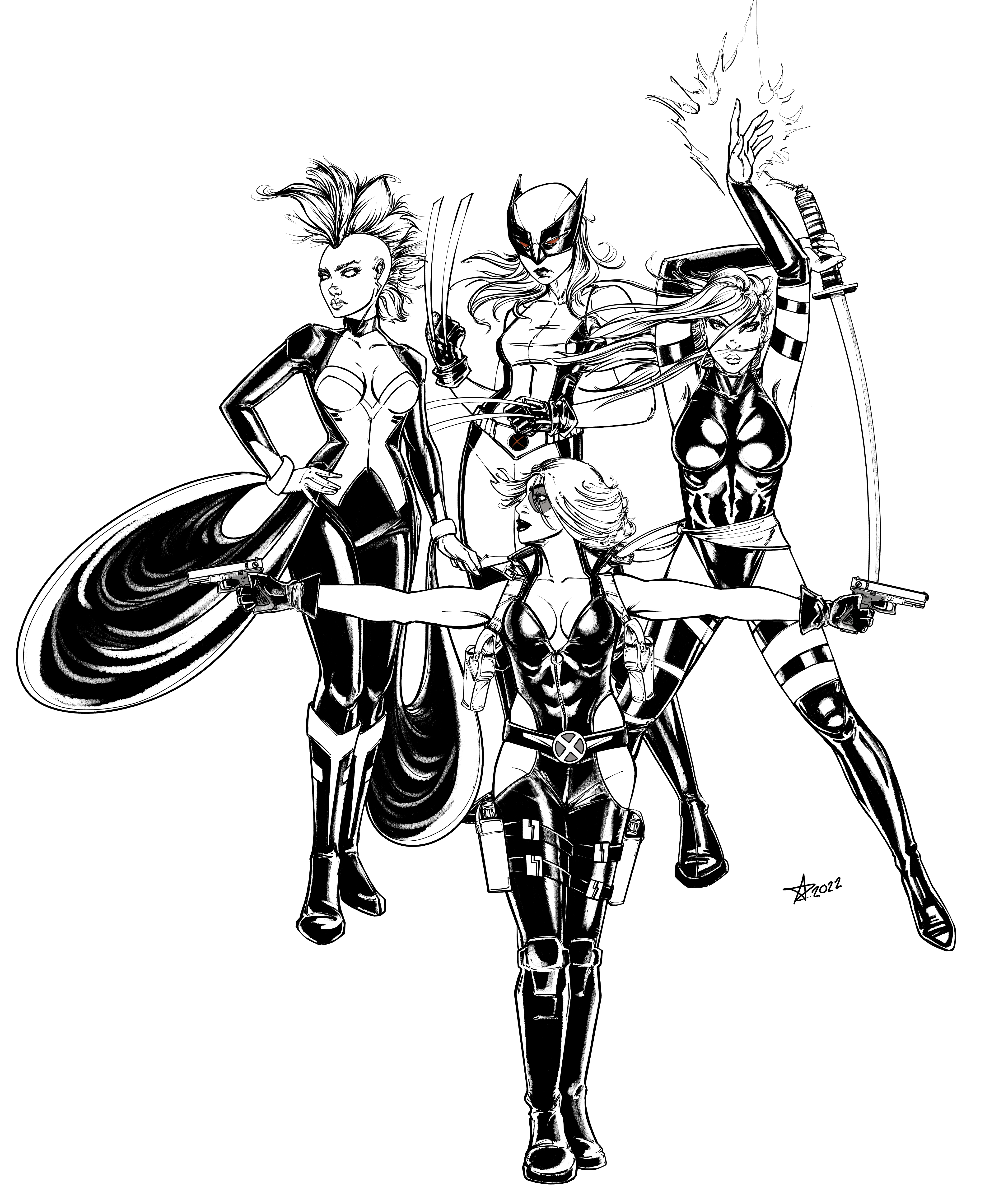 The group isn’t done yet, as I still want to add Rogue. But so far we have Psylocke, X-23/Wolverine, Storm, and Domino. Domino needs some tweaking, Psylocke’s power is unfinished. The composition of the team shot is not final. And I still need to colour it all once I add Rogue. Just trying to decide which costume to use. My overall idea is like the Uncanny X-Men group, hence all the black, and all female. Kind of like a Charlie’s Angels poster. But Charles Xavier’s Angels. I thought it was pretty smart.