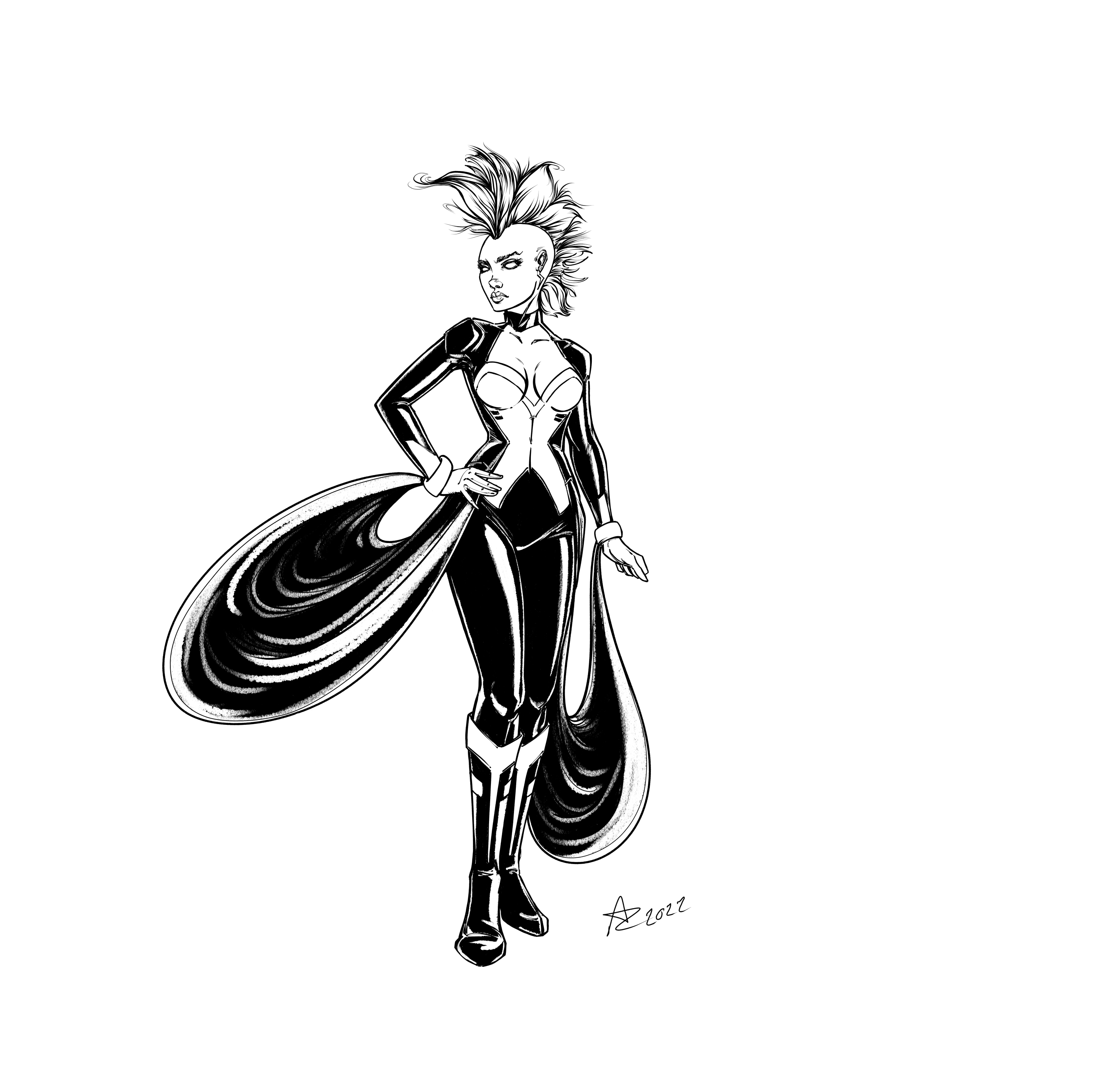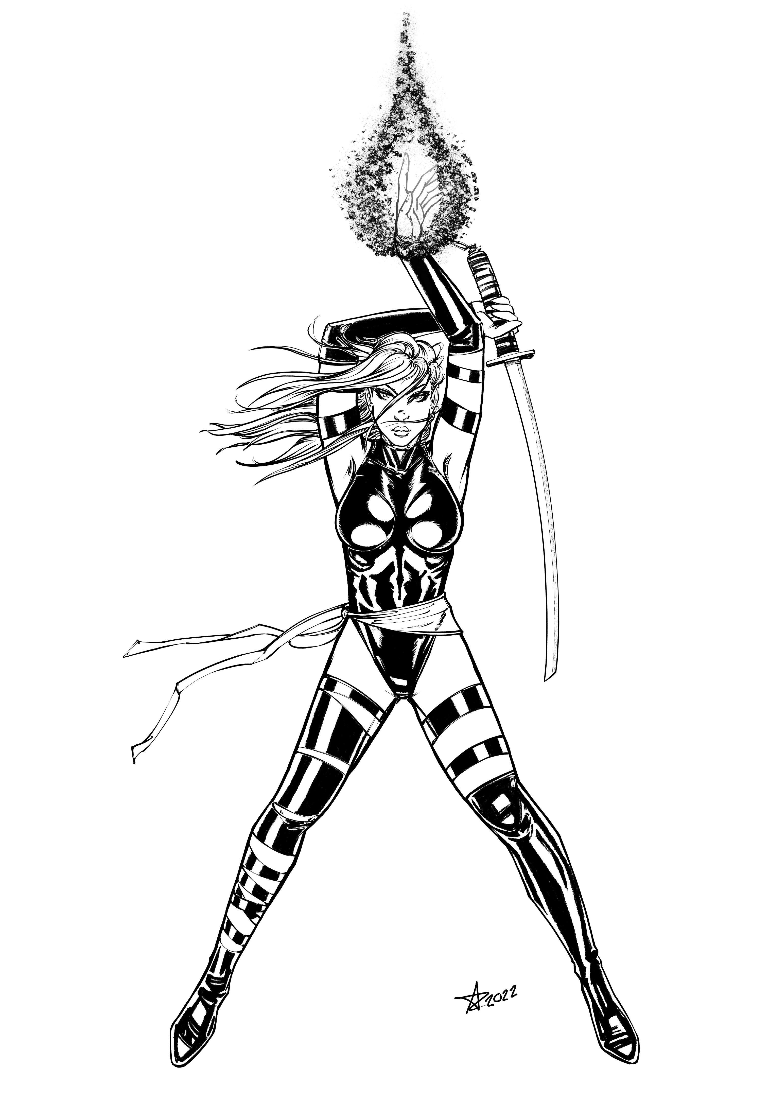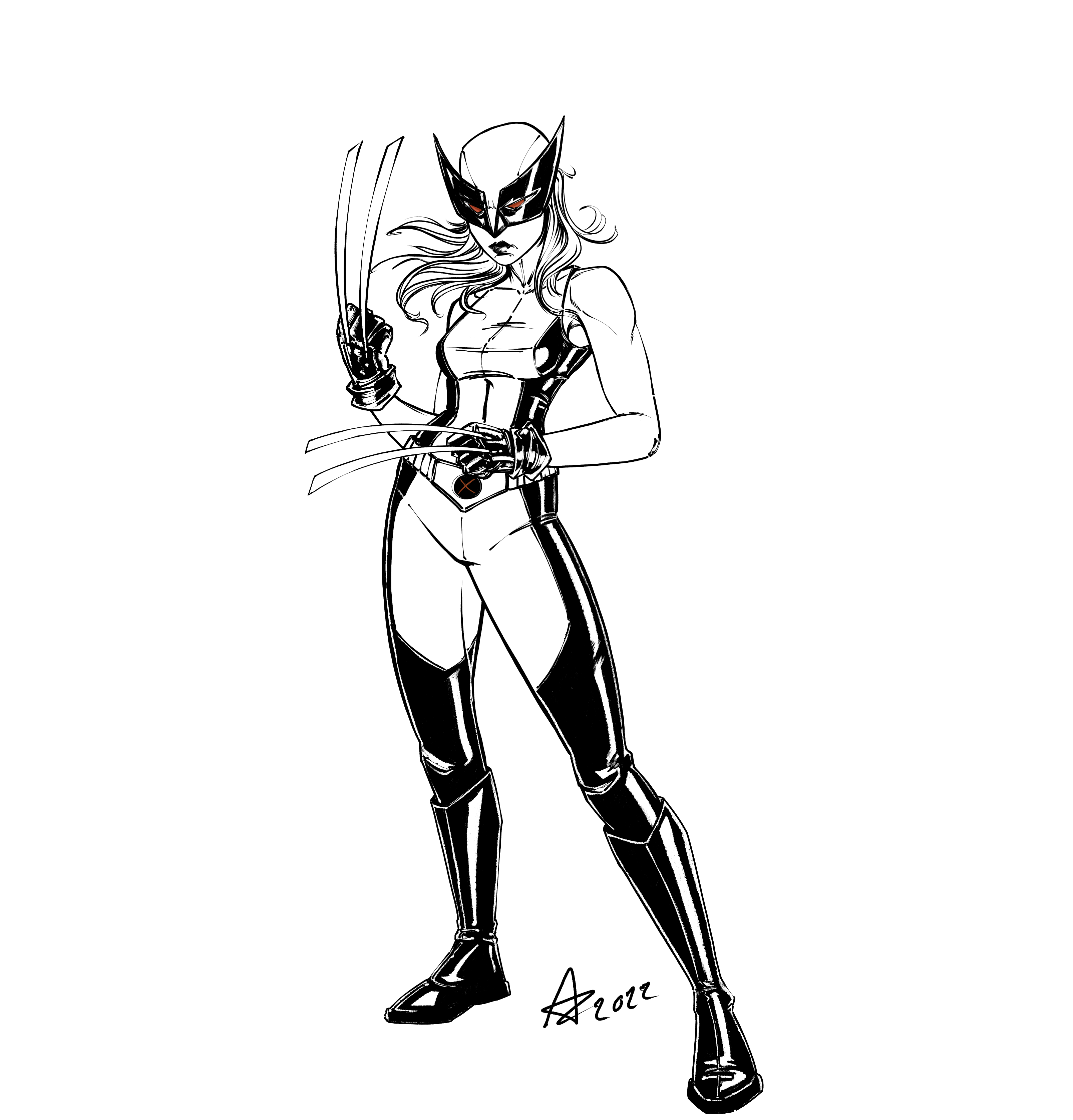 The group isn’t done yet, as I still want to add Rogue. But so far we have Psylocke, X-23/Wolverine, Storm, and Domino. Domino needs some tweaking, Psylocke’s power is unfinished. The composition of the team shot is not final. And I still need to colour it all once I add Rogue. Just trying to decide which costume to use. My overall idea is like the Uncanny X-Men group, hence all the black, and all female. Kind of like a Charlie’s Angels poster. But Charles Xavier’s Angels. I thought it was pretty smart.