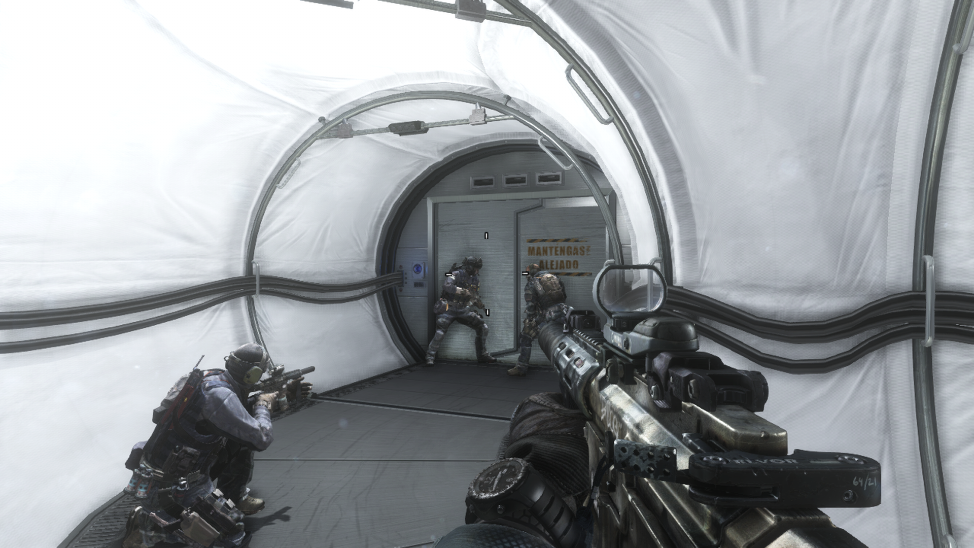 Call of Duty: Ghosts can be commended for its action sequences, as they are visually impressive – always throwing larger and louder destruction our way – but a lot of time there isn’t a lot of interaction required from the player. We’re essentially along for the story/ride IW wants to tell/drive, and the game will just sit and wait for you if you try to be difficult, and decide to pout in the corner.
