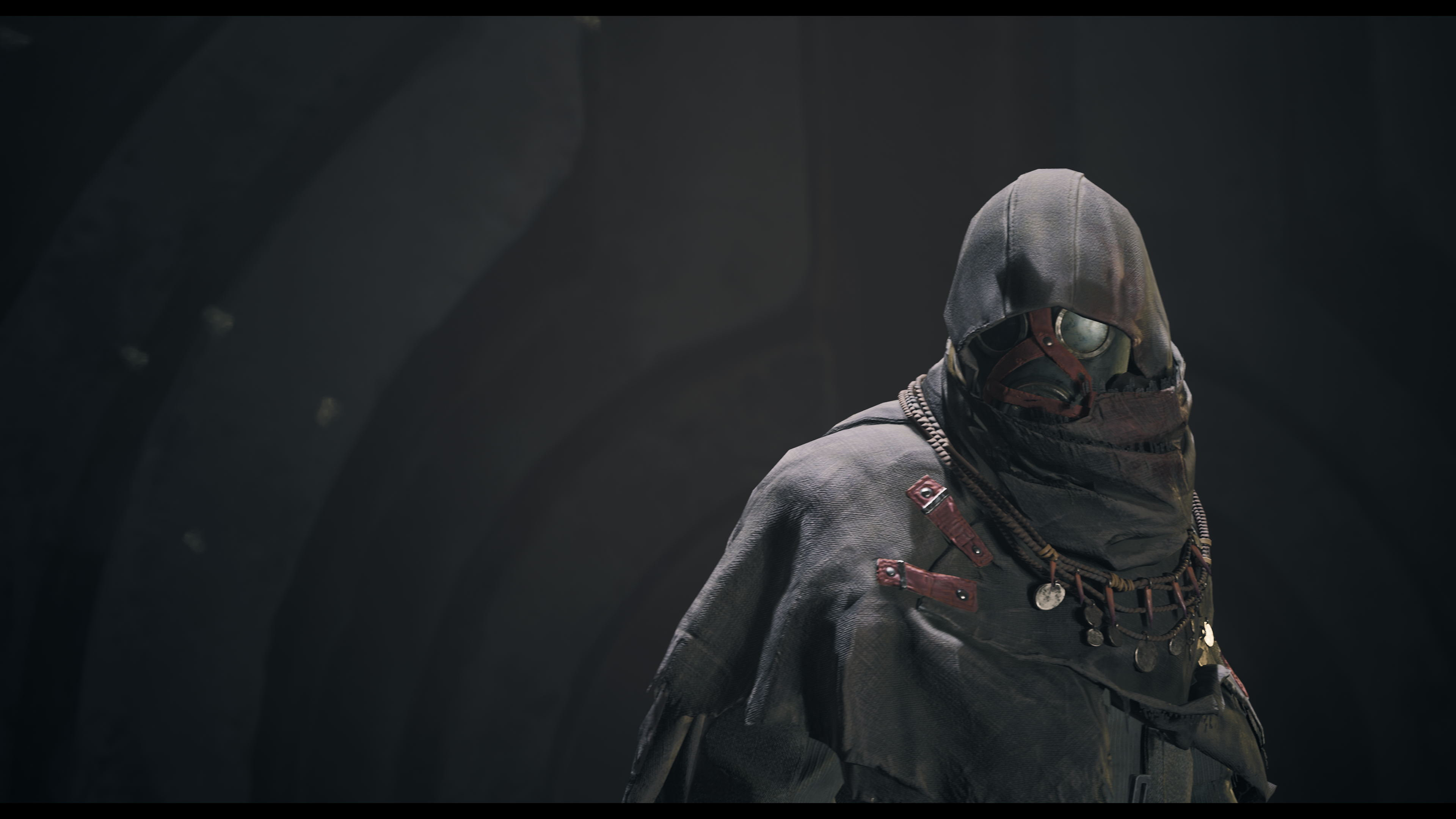 Another idea is simpler, black background with a light source in the center, and just a textured, reflective floor. Like inside a temple or something
