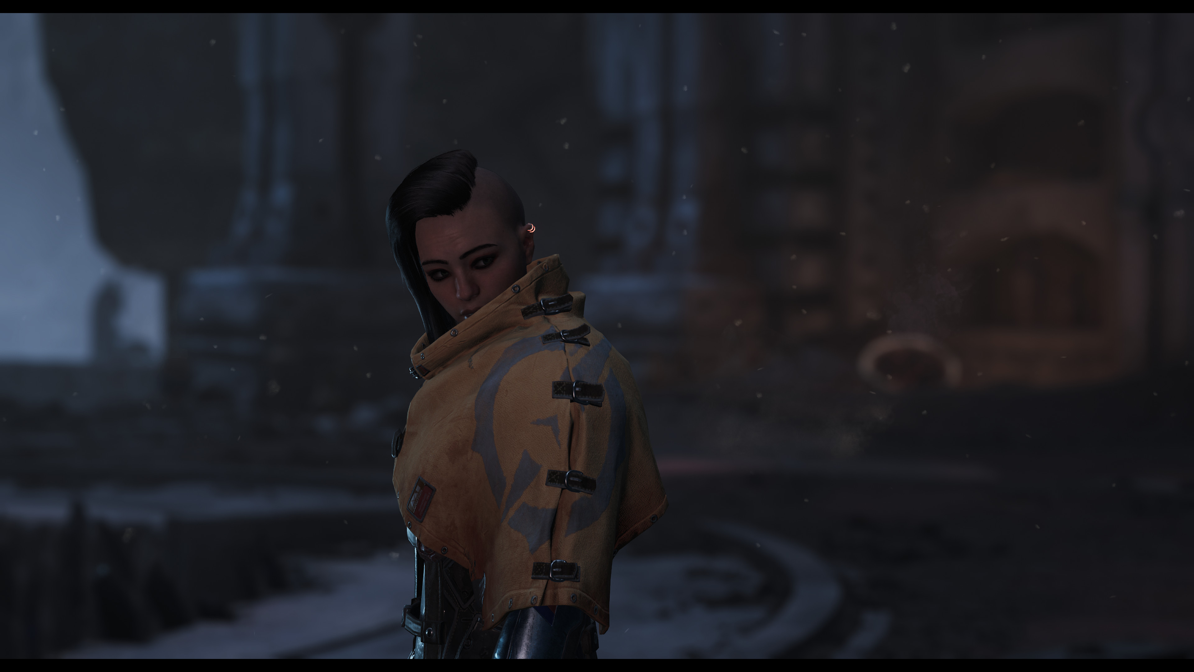 I have one idea which has her in the foreground on the top of some cliffs, and the background, cliffs and ocean. Open, airy, scenic. This would require quite a bit of work and rendering, and I’m not really sure I have it in me.