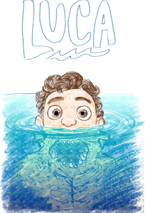 I did a quick cartoon drawing that I’ve had in the back of my head for a while, ever since watching the movie Luca:
