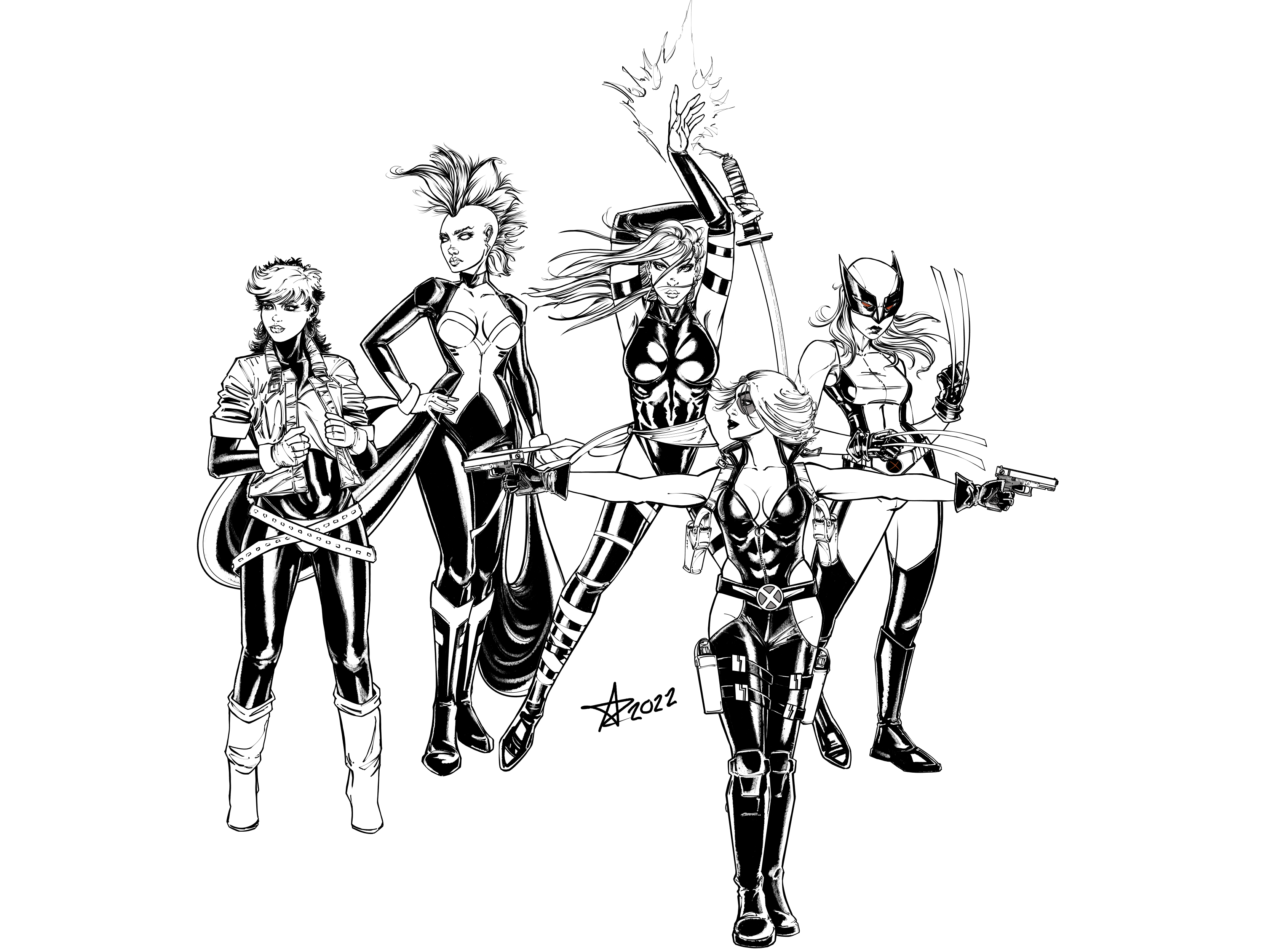 I made a bit more progress on the Uncanny X-Force group, with the addition of Rogue. But now the group composition feels unbalanced again. I think I will add Mystique, maybe Magik, and two guys, with the choice of Old Man Logan, Nightcrawler, Archangel, or Gambit. For the total of nine. I’m leaning towards Archangel because I think his wings will be a challenge, and Night Crawler. Plus those two are the Uncanny group anyways. So they fit. Unlike Rogue. But it was fun to draw the 80’s outfit, and the mullet.