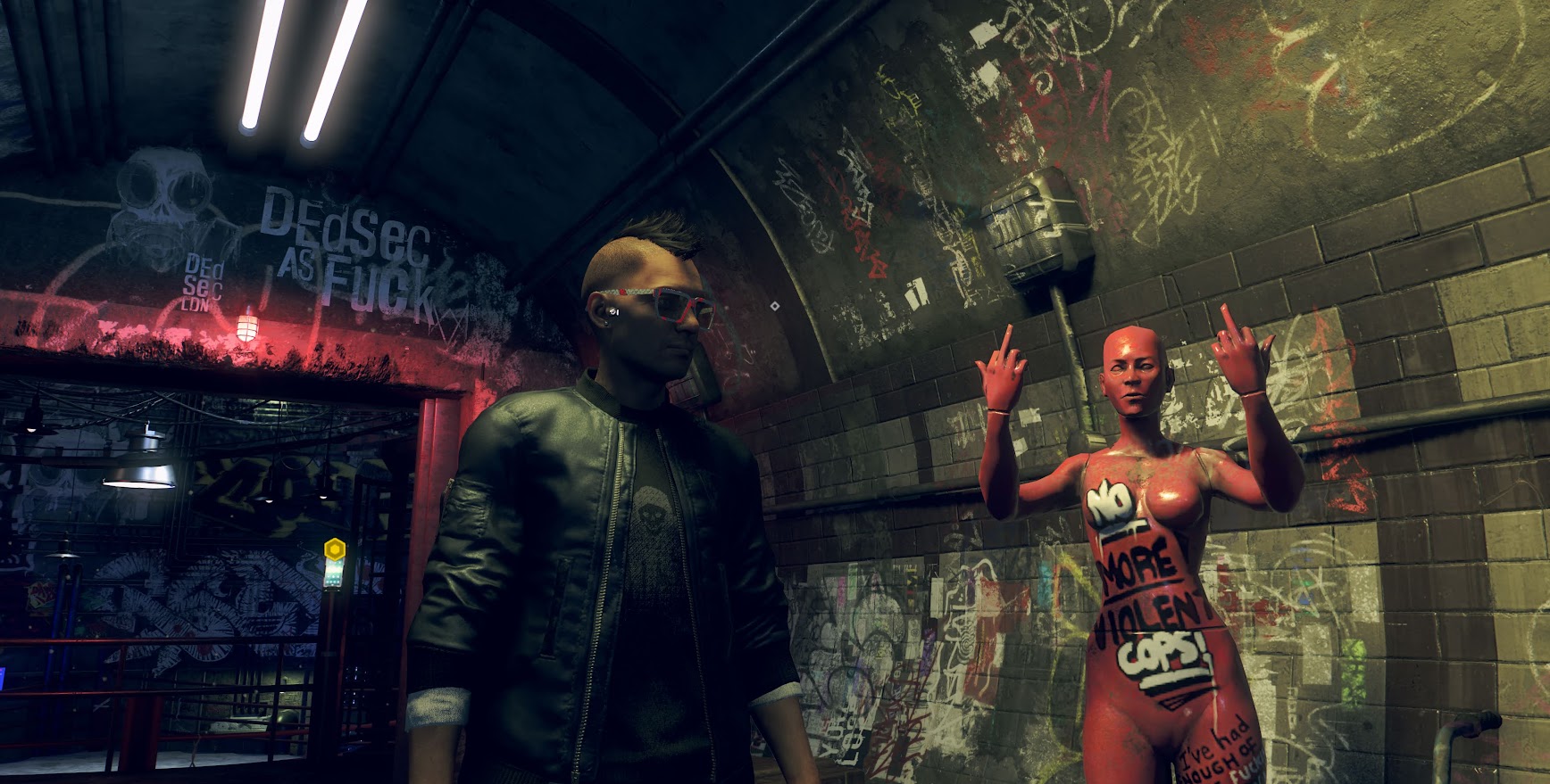 The story starts with a terrorist attack, and as a result, the city goes into complete lock-down with a very heavy handed privatized military group, called Albion, overseeing law and order. Street cameras, roaming patrols, and drones are always on the look out for any rebellious activity. And the terrorist attacks are blamed on the Dedsec group (even though we totally didn’t do it, guys) and the main plot of the game is playing as Dedsec operatives trying to clear their names and get to the bottom of the attacks.
